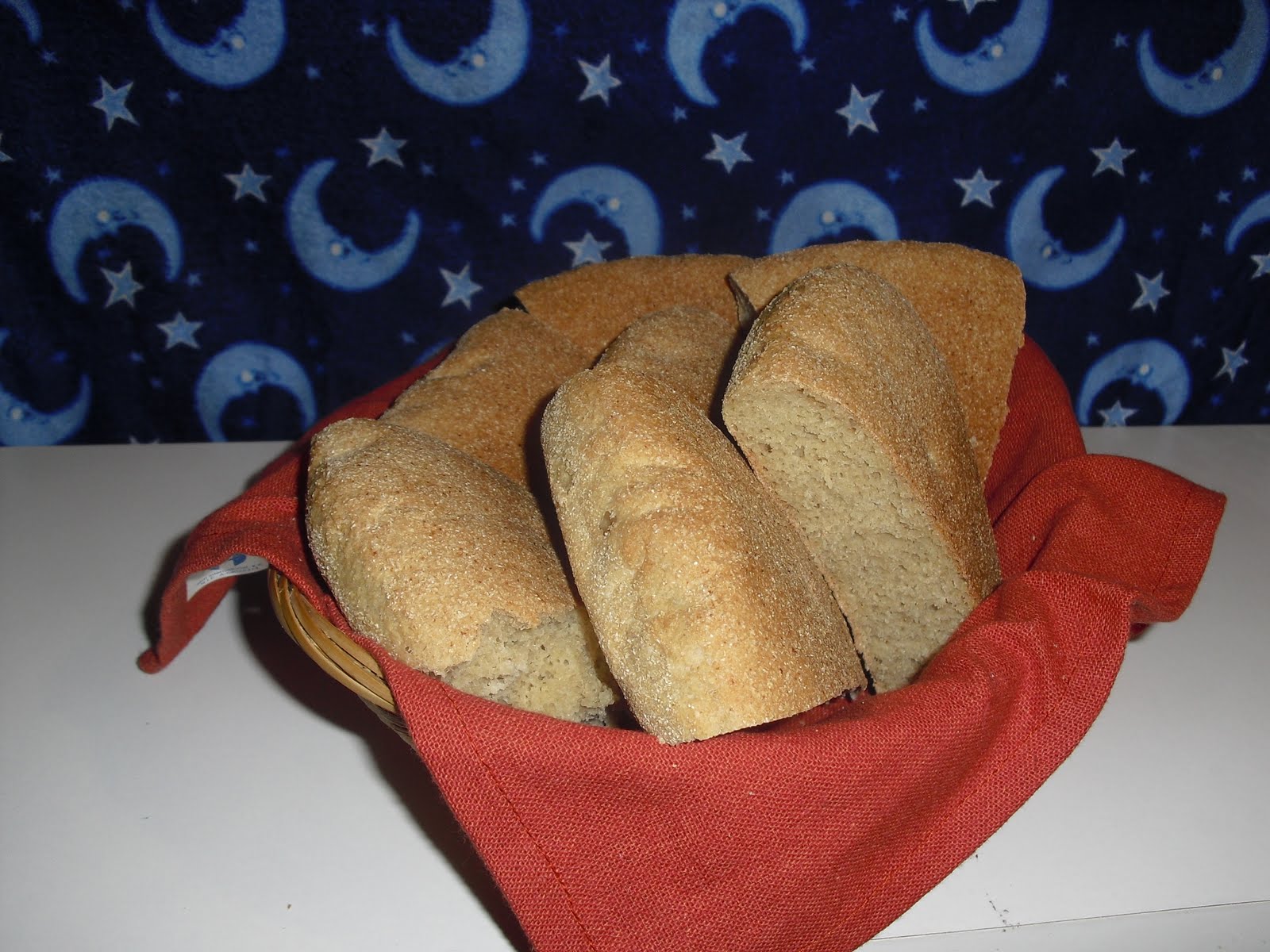 L'eau au moment de pétrir je vois si je dois en mettre plus ou moins. Une fois la pâte prête je lui donne forme, je la mets dans le plateau, ensuite a reposer 1h ou 2h selon la température ambiante. Quand ça a assez monté, au four a 180ºC et puis voilà le résultat. J'ai oublié de faire une photo du pain entier en sortant du four... j'espère que la prochaine fois j'y penserai.